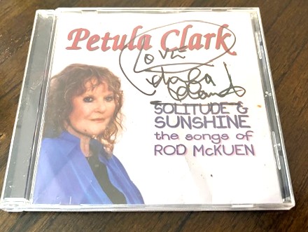 The performances at Festival Place were part of Petula’s larger tour of western Canada and the US , but we were only seeing the Edmonton shows. Petula’s ability to enchant her audience was on full display in both performances. For us a highlight was the ability to see Petula after the performance and to have her sign her recently released cd of Rod Mc Kuen’s songs, “Solitude and Sunshine”. While we waited outside the stage door, as Petula was greeting fans from the inside in a small office area, chatting easily with everyone looking to have various memorabilia signed, Kenny Clayton, Petula’s musical director at the time, was outside enchanting another group of fans with what appeared to be humourous anecdotes.